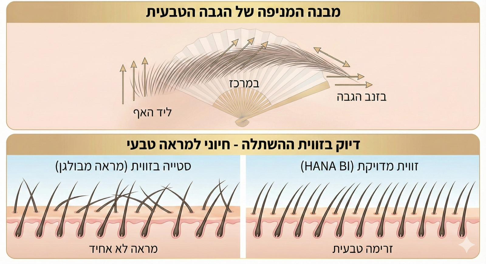 ב-Hana bi אנו מתמחים בשחזור אנטומי של סידור ומבנה הגבות, תוך התאמה טבעית ומדויקת לתווי הפנים הייחודיים של כל מטופל